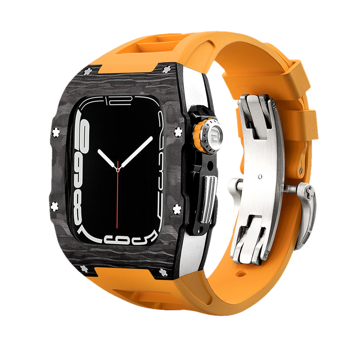 Apple Watch Carbon Fiber EDC Case Wristband | Silver Titanium Shell, Orange Strap